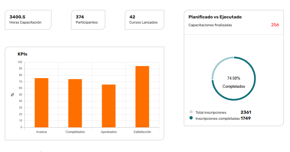 • Cumplimiento promedio ~70%, por encima del estándar del e-learning corporativo.